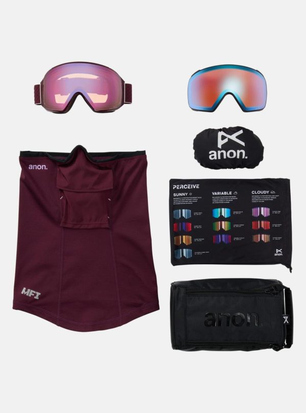 Anon M4 Toric Goggles + Bonus Lens & MFI Face Mask – Deep Cherry/Pink/Blue