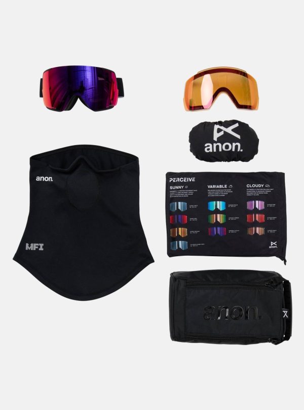The Anon M5S Goggles deliver the same premium performance and contemporary styling as the M5 Goggles, expertly scaled for smaller facial structures. They provide a precision-engineered, comfortable helmet-to-goggle integration with an expansive field of view and superior peripheral vision thanks to the flat toric lens design. Our groundbreaking Magna-Tech® quick lens-change system utilizes powerful rare earth N52 magnets for effortless lens swaps in seconds. Perceive optics deliver exceptional high-contrast vision with terrain-enhancing clarity, featuring our most advanced anti-fog treatment for crystal-clear performance across diverse conditions. Magnetic Face Mask Integration (MFI®) ensures perfect face mask connectivity, while full-perimeter ventilation maintains consistent airflow for fog-free reliability. Includes a bonus lens for overcast conditions, an MFI face mask, a Magna-Tech goggles storage case, and a protective goggles sock.