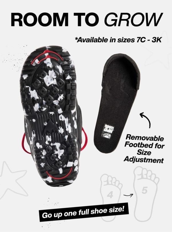 Get your little rider started with confidence using Burton’s Mini Grom Snowboard Boots, designed with exceptional softness and flexibility for optimal comfort. The sizing accommodates younger children perfectly, while oversized hook-and-loop straps ensure quick and hassle-free preparation for the slopes.