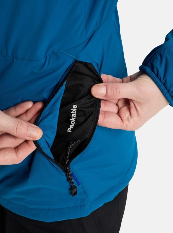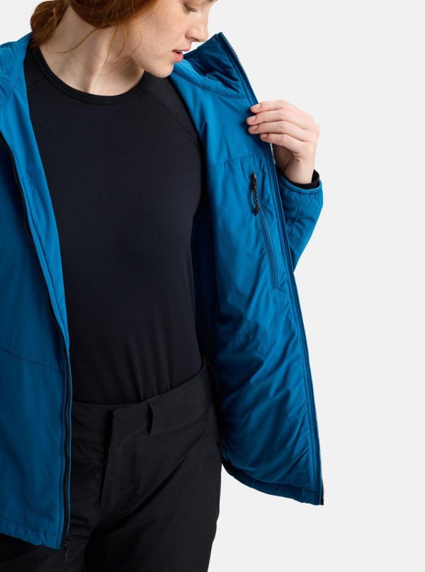 The women’s Burton [ak] Helium Hooded Stretch Insulated Jacket is the midweight layer that should always be on the packing list. You can wear it hiking when it’s cool and windy or under your shell to stay warm on a ridge top. It’s stretchy enough for an unrestricted feel and breathable enough to wear when you’re headed uphill. When you don’t need it, it stuffs into its own pocket and easily stows in a small pack.