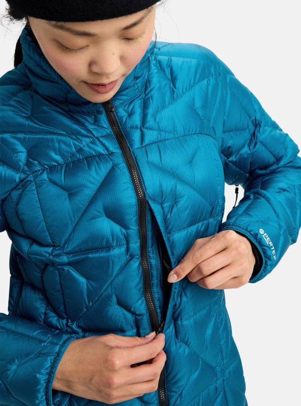 Meet your go-to essential for backcountry adventures – the women’s Burton [ak] Baker Down Jacket. This premium down layer is designed to be your reliable companion that easily packs into your gear bag for any expedition. Slip it on during extended rest breaks, chilly transitions between runs, or when you’re soaking in those breathtaking summit panoramas. Pair it with a shell when you need maximum thermal protection, or simply compress it into its integrated storage pocket for compact carrying when not in use. Responsibly-sourced down delivers exceptional warmth-to-weight ratio, while the durable ripstop exterior maintains a soft, flexible feel that stands up to regular backcountry use.
